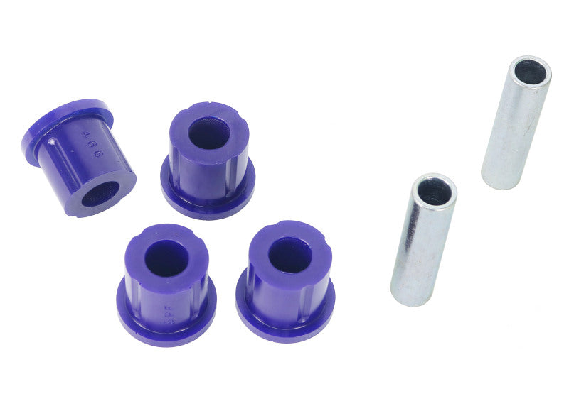 These bushings are often overlooked when upgrading the suspension of a 4WD. Leaf spring bushings stabilize the movement of the rear axle. Inferior, worn or damaged bushings in this area will cause the solid rear axle to move and impart rear end passive steer to the vehicle. It also causes the vehicle to "wander" all over the road and be unstable under heavy braking. This can be especially noticeable carrying a load or towing a boat, RV or any significant trailer. The OE rubber bushings are designed to work at standard ride height with standard wheels and tires and with standard loads. By fitting SuperPro Bushings the rear end of your 4WD will handle just about anything you can throw at it!