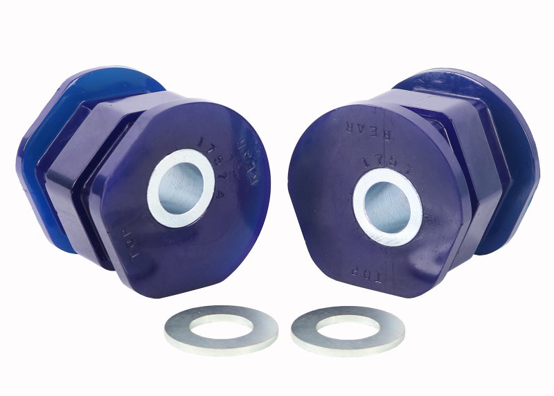 Control arm bushings form the vital pivot and link between all core suspension components. SuperPro's 'offset' bushing options introduce additional positive caster into the front end suspension geometry. With a small but significant change the additional caster delivers several benefits: Improved straight-line stability and tracking; your vehicle will track straight and return to center with less driver input. Dynamic camber gain with steering angle “ the more your turn the wheel with additional caster the more both wheels will ˜camber' into the turn putting more of the tire's contact patch on the road as the suspension loads up in the corner and helping to resist the tire ˜rolling over' onto the shoulder and compromising grip. Enhanced steering weight and feel; the small caster change will weight up the steering slightly as you come off-center and the improved cornering grip delivers greater feel for the handling limit through the wheel. The caster offset bushings deliver only benefits with no negative impact on tire wear, comfort or unwanted handling behavior. SuperPro's polyurethane bushings are the culmination of nearly 5 decades of suspension expertise and development in Australia's harshest terrain. Designed with durability as a paramount feature we also bring ride and passenger comfort to the forefront of our development. Our designs and material compositions retain OEM levels of noise and harshness isolation while delivering superior performance and road manners in all conditions.