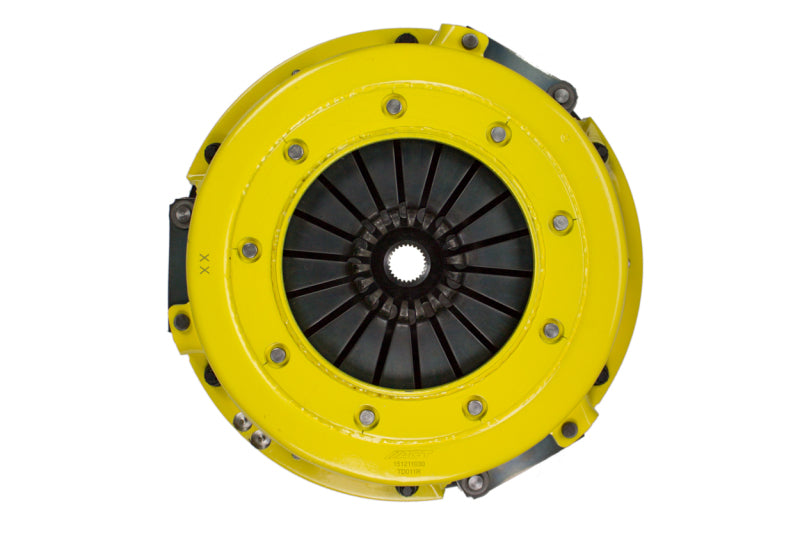 T1R-D03 twin disc kit offers twice the number of disc surfaces for better wear, heat capacity and long life compared to single disc kits. These kits use a proprietary Positive Lift Floater System design, which results in quiet operation with no floater rattle and no posts to wear. ACT twin disc kits endure an exclusive four-stage, heat treating process performed on all diaphragms. The ACT twin disc features the ability to adjust for disc wear and provides equal disengagement for discs. ACT's 6-pad rigid race discs are made with high quality, ceramic friction materials. The chrome-moly hub is heat-treated for strength and durability. The lightweight, rigid design allows for quicker shifts and trouble-free service. All ACT twin disc kits include a CNC-machined and dynamically balanced flywheel to ensure trouble-free installation and operation. ACT twin disc kits include a pressure plate, two discs, a floater, flywheel and alignment tool. Some kits may include a pilot bearing and release bearing.