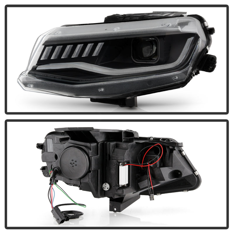 Spyder Chevy Camaro 16-18 Halogen Model Full LED Headlights Black PRO-YD-CCAM16HALAP-SEQ-BK