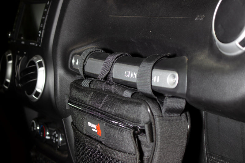 Enhance organization in your Jeep with Fishbone Offroad's Universal Utility Bag. Fits dash grab handles, fully adjustable, and perfect for recovery gear.