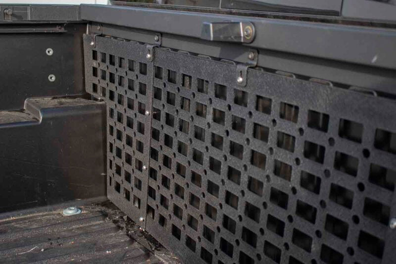 Fits 2016+ Toyota Tacoma - Long 6' Bed. Easy installation. Supports MOLLE and tactical style gear. Black Powder Coated. Keep the clutter within your Tacoma's bed in control with this pair of High Speed, Low Drag MOLLE panels!