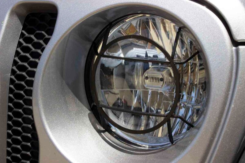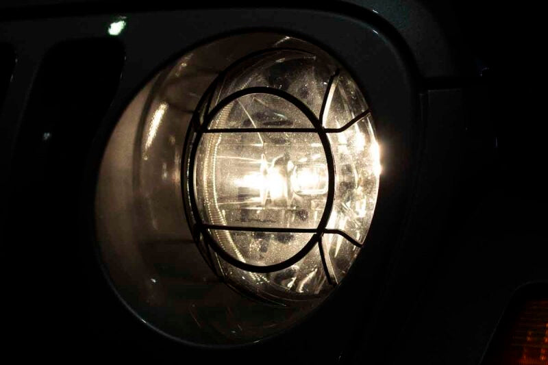 Fits 2018 to Current JL Wrangler, Rubicon and Unlimited, 2020 to Current JT Gladiator. Black powder coated Aluminum. Designed to mount over OEM headlights. Provides extra protection from off-road trees and brush.