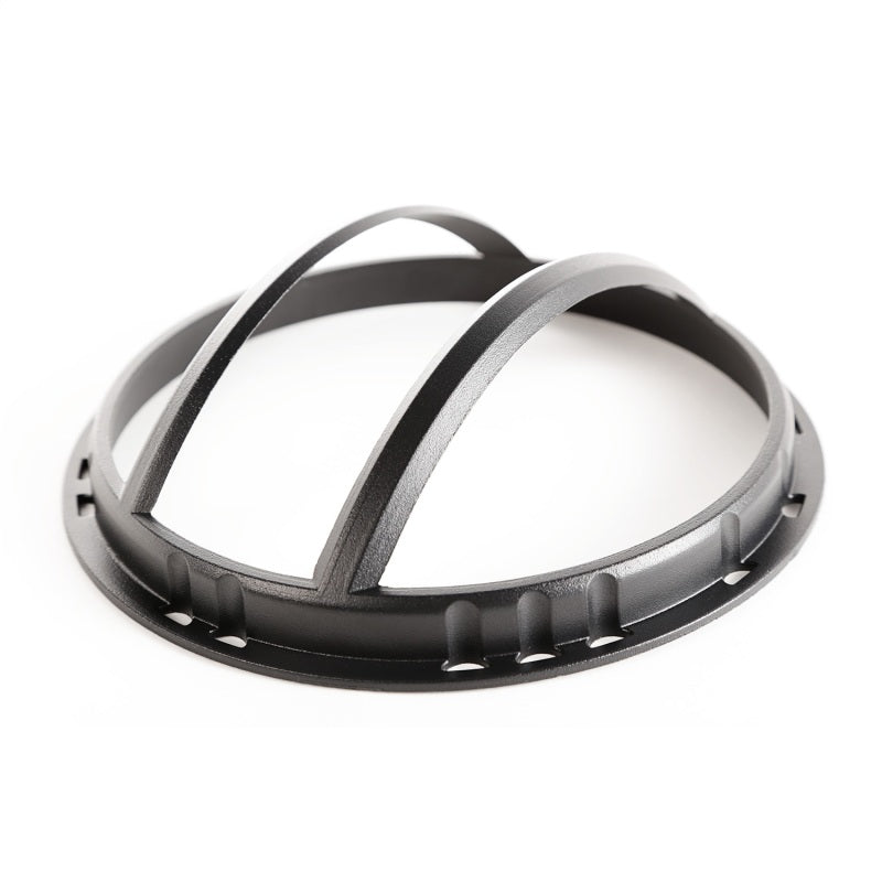 The Rugged Ridge Pivotal Headlight Euro Guards special patent-pending design allows for the guard to be rotated on the headlight for a variety of looks. The angry attitude of the Rugged Ridge Spartan Grille is amplified by the angled light guards, allowing you to make your own unique automotive expression.  The Pivotal Euro Guard still retains the classic off-road styling of the original headlight Euro Guard but benefits from solid cast aluminum construction for a lightweight, but seriously sturdy, option in headlight protection, on and off-road. Pivotal Headlight Guards feature a premium textured black powder coat finish to accent any exterior color (Red Powder Coat and Raw Aluminum finishes are COMING SOON!). Installs easily in minutes using factory hardware and replaces the factory headlight retaining ring. (Sold in pairs) Patent Pending.