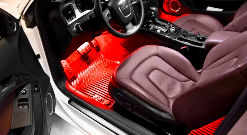 The Retail set includes 2 x (15") of waterproof LED strips. This Flexible strip can also be cut down into smaller sizes. A diagram is pictured behind the packaging displaying the proper cut areas of the strip. The 15" Flexible strip is ideal for over the counter sales for over the counter sales. Easy install makes this the ideal strip for enhancing the automobile's look. Strip is water-proof and comes with a 3M adhesive for indoor or outdoor applications. Current draw is only .35A, which makes this an easy accessory to tie into other 12V components. Flexible strip is available in a variety of colors and includes a 1 year warranty. Genuine 3M Adhesive backing for EASY installation!