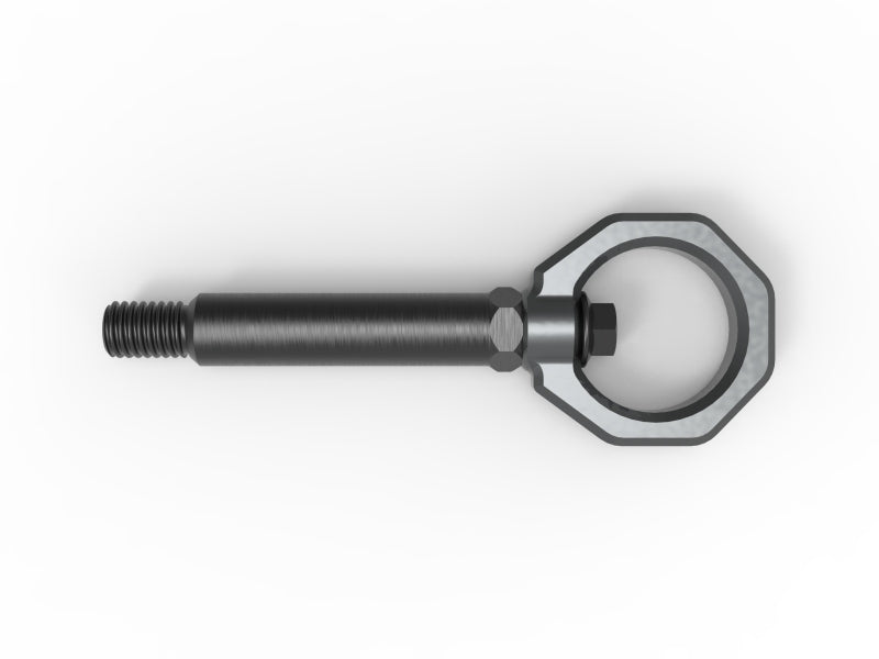 Add aggressive styling, and useful functionality to your BMW with aFe CONTROL rear tow hook. It’s sleek design not only looks great but is strong enough to safely winch your car onto a tow truck or get towed trackside if the need arises. Our BMW specific CNC machined stem and loop is made of 4130 steel. The stem is black zinc coated for corrosion resistance. The loop is powder coated Gray (Red, Blue, and black are available). This is not a universal tow hook. The stem was specifically designed for the BMW and the length was carefully determined to fit the rear bumper. A proper front tow hook to match is also available. (p/n 450-502001-G) Both the stem and bolt threads are pre-coated with Vibra-tite threadlocker. This keeps your tow hook from loosening due to vibration. The special threadlocker is designed to remain flexible, removable, and reusable.