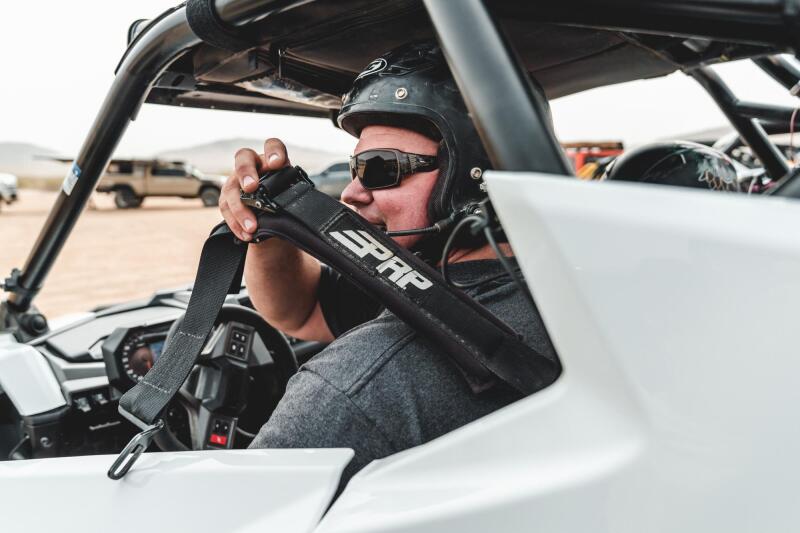 Whether racing, running the dunes, or crawling the Rubicon, the 5.3 Harness will hold you in tight. This 5 point harness with 3" belts has sewn in pads for comfort, all black hardware for style and EZ adjusters on the shoulders. The EZ adjusters allow you to adjust your shoulder straps quickly and even if they are dirty or muddy. The seat belt also has a removable sternum strap, and a red latch guard on the lap belt. The lap belt bolts in. The shoulder harness and crotch strap can either bolt down or wrap around a roll bar. SFI 16.1 certified for racing. Warning Proper installation and consistent use of the 5 point harness restraint system is critical to your safety in event of accident. To reduce risk of serious injury or death: Follow vehicle manufacturers, and PRP Seats instructions and safety messages during installation and use of this product. Use all belts provided. Secure lap belt first; low and snug across hips. Sternum strap tight at chest line (min. 4” below neck). Adjust remaining straps per instructions and confirm fitment restrains user & provides safe clearance from wheel, dash, roll cage, etc. Inspect all components of the 5 point harness restraint system regularly & replace as indicated by accident, wear or abrasion. Replace no later than 2 years from date on SFI 16.1 tag. This 5 point competition restraint system is intended for UTV or other off-road vehicle-not replacement for FMVSS 209 restraints. Never use with child car seats or boosters.