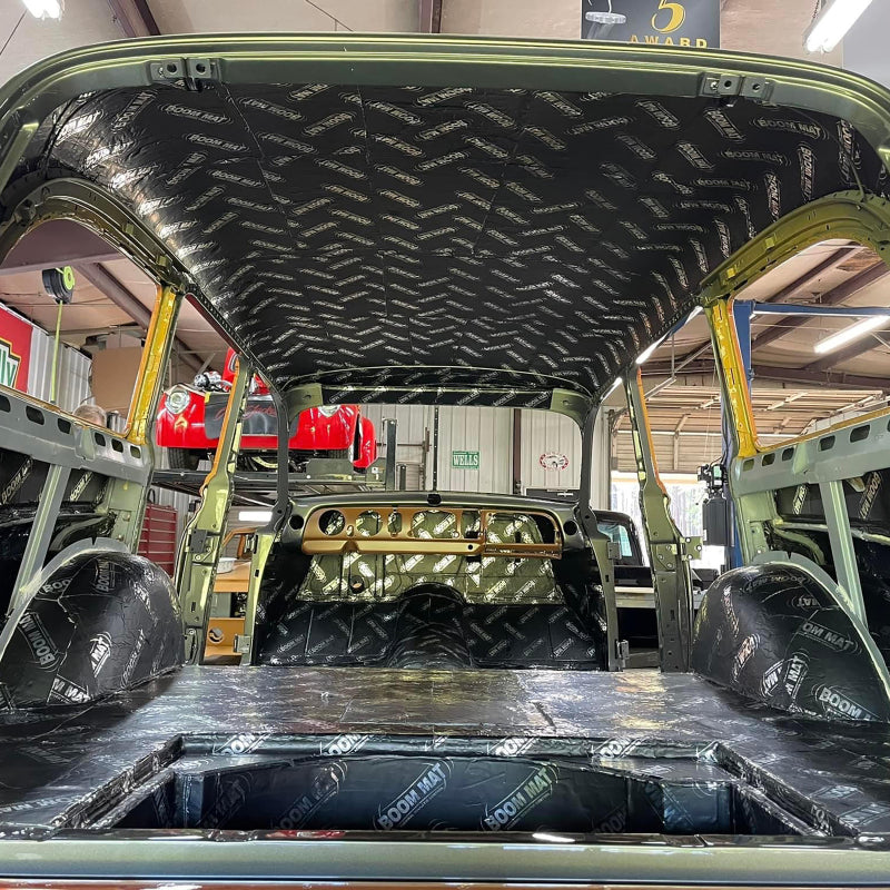 Boom Mat Vibration Damping Material is a premium quality damping material providing extreme noise damping for the most demanding commercial and sound competition applications. Interior panels vibrate and generate noise. Boom Mat stops that noise by trapping it between our thick, 4 mil aluminum stiffening top skin and the asphalt free, pure butyl, noise constraining layer. Plus worry-free no snag adhesion to any interior surface, vertical or overhead, even in the most demanding of temperature extremes. Those quality components are what makes Boom Mat Vibration Damping Material require only 25-50% coverage to get the job done. This saves weight, material cost and installation time. Easy peel plastic release liner (not a paper backing that tears) Enhances stereo performance and sound Gives you a quiet and comfortable interior Minimal prep & install time Performs in extreme temperatures Use as a first layer to control noise and dampen vibrations 15 (fifteen) 12.5in x 24in sheets (30 sq. ft.) 4mm thick