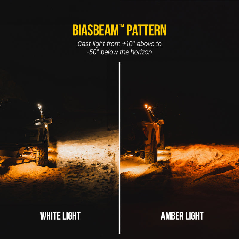 The KC® Profile 10" SideCast™ Flush Mount Light Kit includes four low-profile lights designed for precision side lighting and trail visibility. Designed specifically to integrate into the Platform One™ roof rack's side rails, these low-profile, 10" LED lights use advanced TIR optics and our custom BiasBeam™ pattern to cast light from +10° above to -50° below the horizon. Perfect for harnessing the full power of the lights where you need it most, at the campsite or for trailside repairs. Each P10SC also features DualColor output, allowing you to switch between white light for general visibility or amber light for cutting through dust or for a soft camping scene light. The seamless flush-mount design maintains a clean, low-drag aesthetic while resisting trail damage. This 4-light kit is designed to work seamlessly with KC's Power-Ready™ ecosystem. Vehicle-specific wiring harnesses are sold separately for a plug-and-play install.