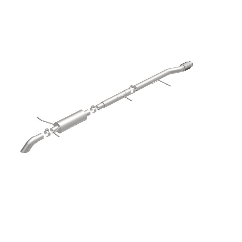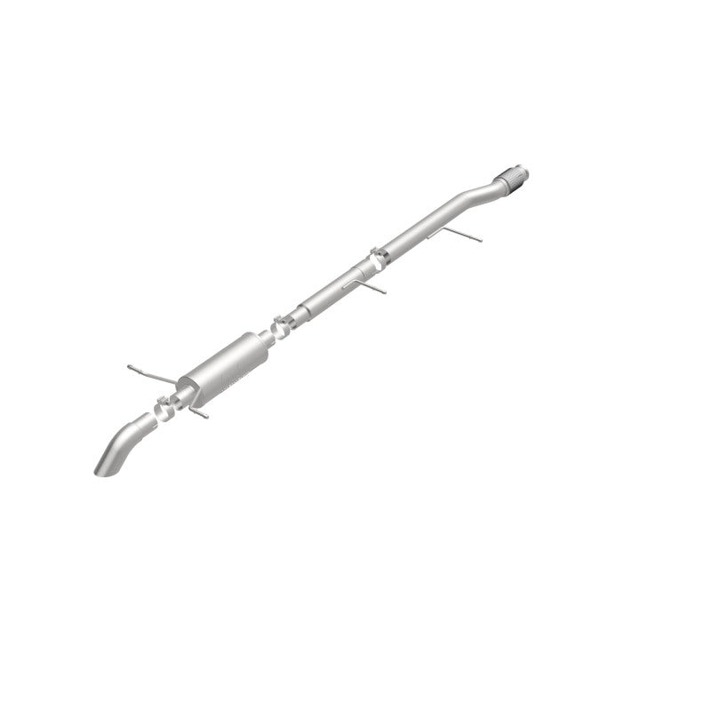 The MagnaFlow Off-Road Pro Series Cat-Back Performance Exhaust System 17146 brings additional off-roading prowess and our deep signature exhaust note to your Truck with a weight-optimized, dyno-tested, corrosion resistant and durable stainless steel design engineered to closely hug the undercarriage for improved ground clearance. Exhaust kit 17146 is engineered to produce Very Aggressive exterior and Aggressive interior sound levels. Extensive 3D scanning was used during the development of this Truck exhaust system to create a direct-fit design, enabling a do-it-yourself installation process. 17146's emissions-legal cat-back design replaces all your truck's exhaust components from the catalytic converter on back with its 3in. diameter mandrel bent main piping that passes through 1 Straight-Through mufflers before ending in a turndown before rear axle exit with 3in. Satin Clamp-On Single Wall Turndown Cut Edge tips. Exhaust system 17146 is produced using advanced CNC precision robotic manufacturing techniques and backed by MagnaFlow's limited lifetime warranty.